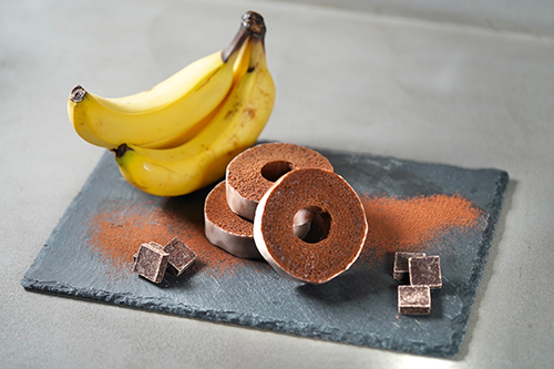 昨年も大好評だった、かわさき応援バナナを生地に混ぜ込んだ超濃厚バナナ味のバウムクーヘン。今年は「チョコバナナバウムクーヘン」として販売いたします!