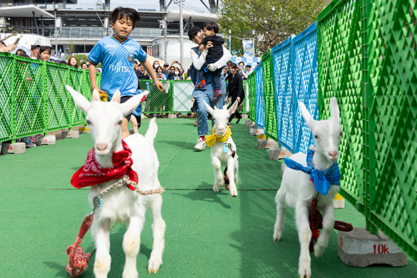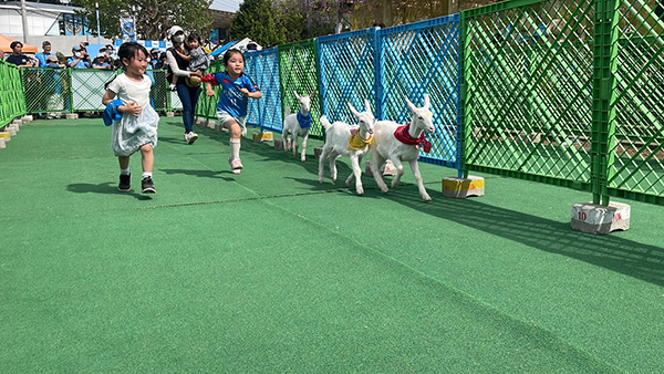 生まれたての子ヤギたちによる「どうぶつかけっこ」を今年も実施。
