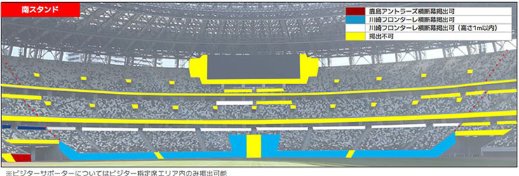※その他、試合の運営または進行を妨害し、他人に迷惑を及ぼす等のおそれがあると警備従事者が認める横断幕の掲出等は不可となります。