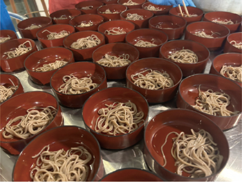今回は皆さんがワンちゃんのように勢いよくそばをたくさん食べて、どれだけ食べられるか競うブースです。