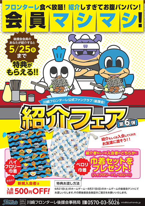 特典などの詳細はこちらから ◇川崎フロンターレ後援会紹介フェア第6弾実施中!!◇入会者:入会手数料500円OFF