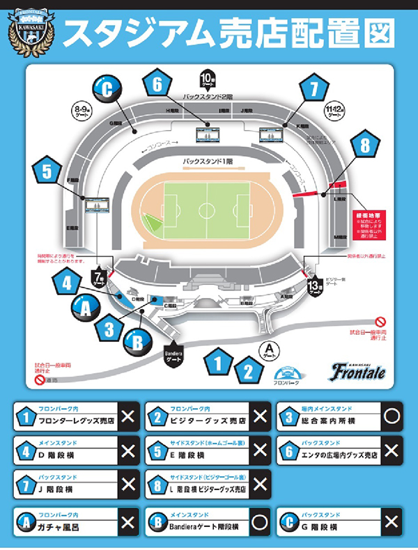 TEL 044-767-6111(営業時間 11:30~21:00/月曜定休 ※月曜日が祝日の場合は翌火曜日がお休みとなります。またホームゲーム等開催日は変更の可能性あり)
