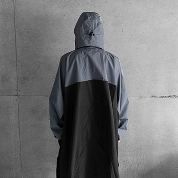 ツバ付きフードで快適さを追求し、機能を踏襲した袖付きのレインポンチョです。 高い耐水性やフード部分のツバ付き・ハイネック仕様で顔まわりをしっかり防御してくれるので、フェスやアウトドア、レインシーンにおすすめです!