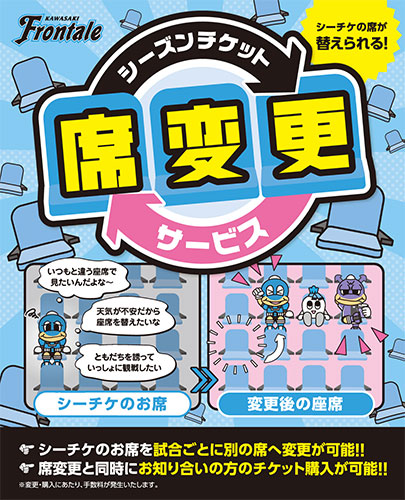 川崎フロンターレでは、2025シーズンの試合にて、Jリーグチケットでのクラブ公式「シーズンチケット席変更サービス」のトライアルを実施いたしますので、お知らせいたします。