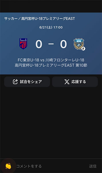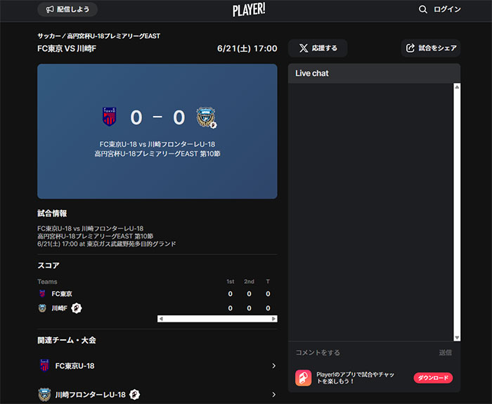 今シーズンもフロンターレアカデミーの選手たちの戦いぶりをタイムリーに皆さんにお届けするため、スポーツライブエンターテイメントアプリ「Player!」にて試合速報を実施します。