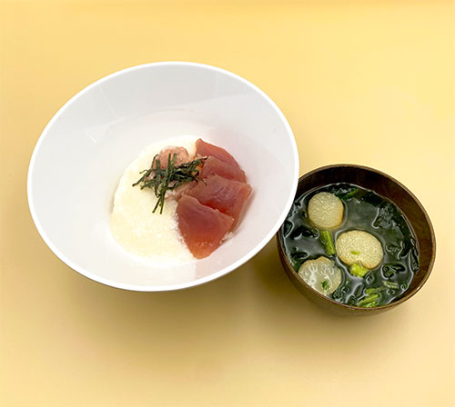 漬けマグロとネギトロに出汁とろろであっさりとしているので、気温が高く食欲が湧かないな... というときにもオススメの一品!