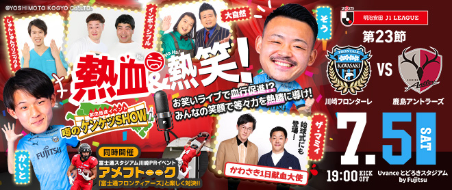 7月5日(土)鹿島アントラーズ戦では、川崎市、神奈川県赤十字血液センターとの三者主催で、献血推進イベント「噂のケンケツSHOW」を実施します。イベント当日のU等々力は、「血液=レッド(赤)」に絡めた催し物が盛りだくさん!!