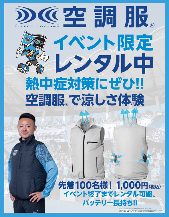今回、皆様に楽しく安全に試合観戦を過ごしていただくため、空調服®の当日レンタルをご用意いたしました。まだお試しいただけていない方は、ぜひこの機会にご体験ください!