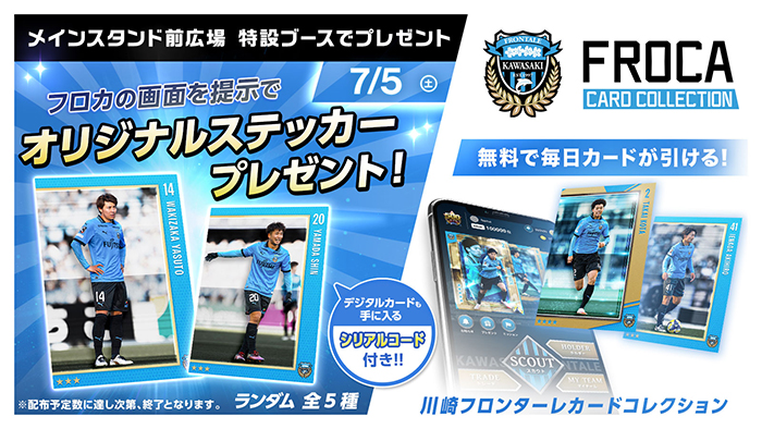 今年5月にサービスを開始した「川崎フロンターレカードコレクション」、略して『フロカ』の特設ブースが登場。来場者限定で「オリジナルステッカー」をプレゼントします!!