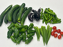 | 商品 | ナス、ミニトマト、キュウリ、オクラ、ピーマン、シシトウ、カボチャ、エダマメ ※8種類の中から、当日朝収穫できたものを販売します。 |