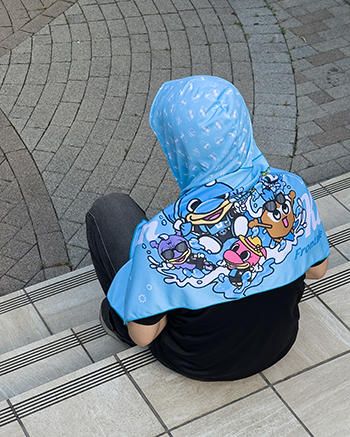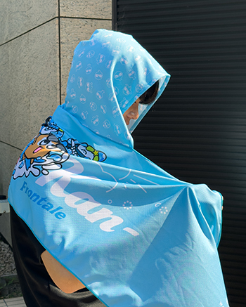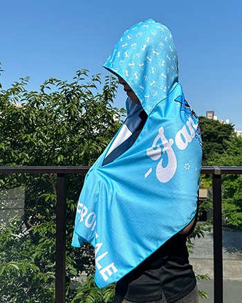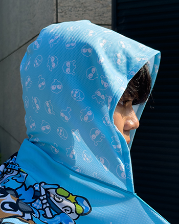 水に濡らして絞ると冷たい夏場に最適なクールタオルです! UVカット96%以上なので、濡らさなくてもサッとフードをかぶって紫外線対策にもなります。