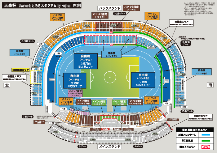 ※2階自由席では、「立ち上がっての応援」「鳴り物の使用」「大旗の使用」は禁止となります。