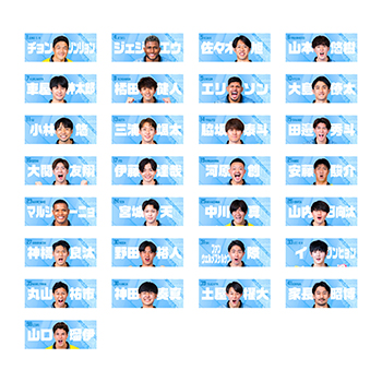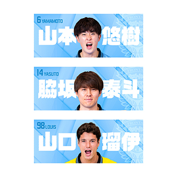 「え!?あそこに○○選手いない!?」と一瞬ざわつくかもしれない、選手の顔を大きくデザインした、その名も「フェイスフェイスタオル」。「アピールするのはちょっと恥ずかしいな...。」という方もこのフェイスタオルで顔を隠して選手入場時に掲げてください! むしろ目立つかもしれませんが... 選手に気づいてもらえるグッズNo.1になること間違いなしです。