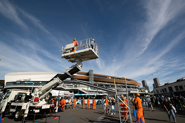 道路も線路も両方走る「架線整備車」操作体験ブース