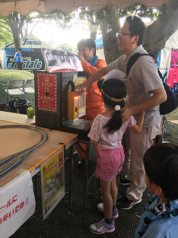 フロンターレオリジナル電車アトラクションの「リアル電車deゴー」が今年も登場します! 運転士が乗った電車を押して、決められた場所にピッタリ停まれば豪華賞品をプレゼント。