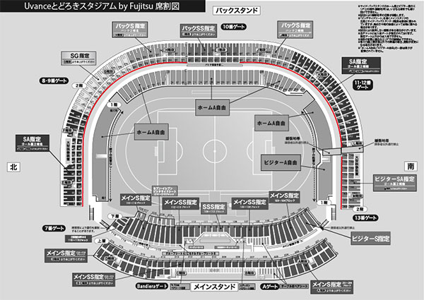 ※座席位置によってはパートナー看板、中継用テレビカメラ、企画シートなどの影響でピッチが見えづらくなる場合がございます。