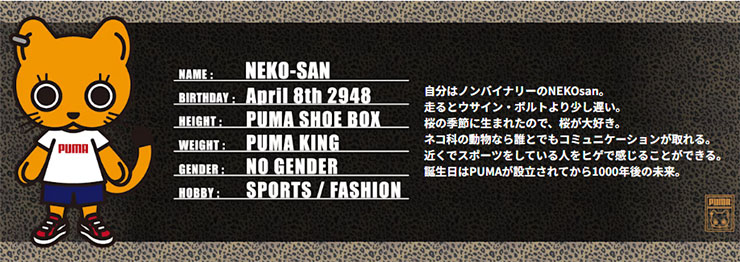 プーマの公式キャラクター「NEKO-san」が、当日は場内外でグリーティング予定です。