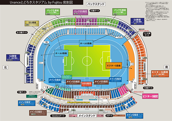 ビジターS指定、ビジターSA指定、ビジターA自由がビジターサポーターのエリアとなります。