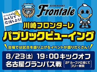 8月23日(土)に三井ショッピングパーク ラゾーナ川崎プラザ 2F ルーファ広場にて名古屋グランパス戦のパブリックビューイングイベントを開催いたします。