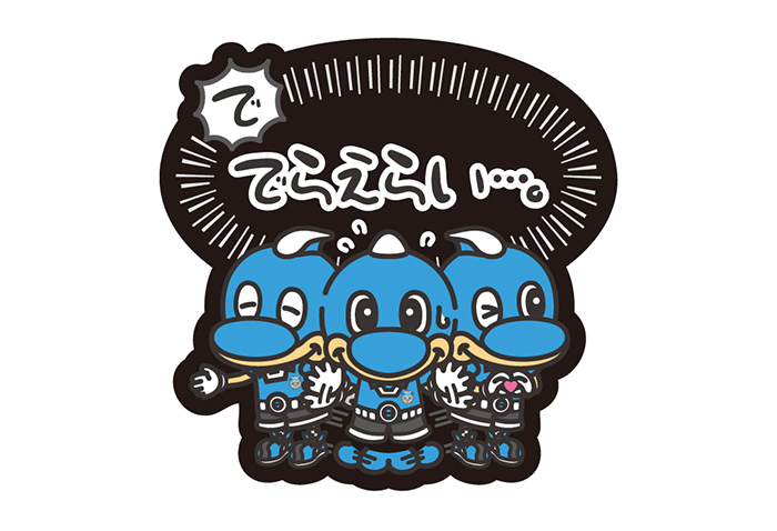 今回のデザインに採用された名古屋弁の『でらえらい』は『とても大変』などの意味があります。サポーターの皆さんへの想いが強すぎて、すべてのサポーターの皆さんにファンサービスをしたいがあまり、とても大変な状況になっているふろん太を表現しました! 少し後方でピリッとしているカブレラが想像つきます。