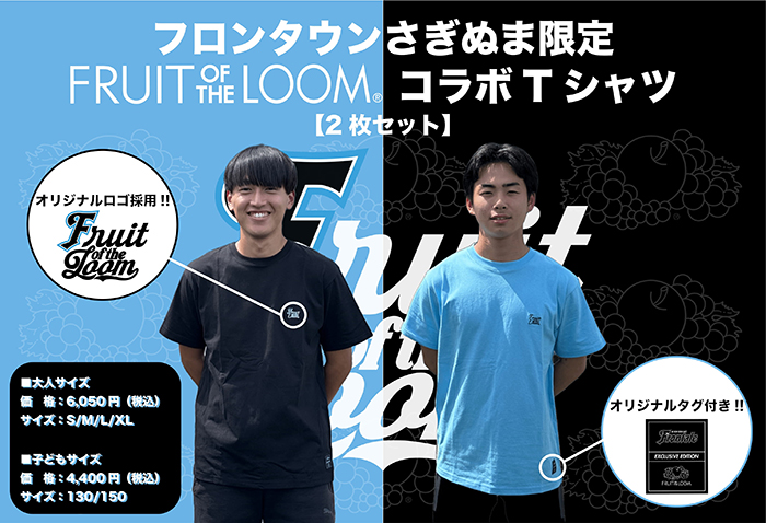 Fruit of the Loomの頭文字の「F」をフロンターレロゴの「F」に変え、裾元には「限定」を意味する「EXCLUSIVE」と記されたオリジナルタグをデザイン。普段着として着用しやすいデザインが特徴です。