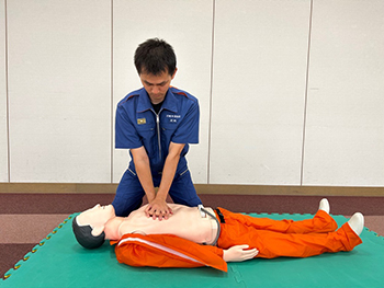 呼吸をしていなかったら、すぐに胸骨圧迫開始。そしてAEDによる電気ショック。もしもの時に備えて、いざチャレンジ!