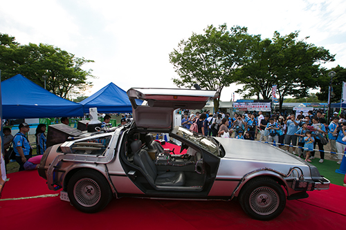 野球場前広場1 ゴミが燃料!? 某人気ハリウッド映画のクルマ型タイムマシン「DMC-12」と記念撮影会