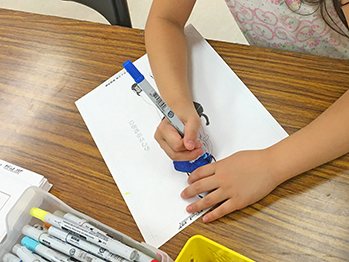 子どもたちが、自由に好きな絵を表紙に書きながら最後にLEDを仕込んで、ランタンのできあがりです。