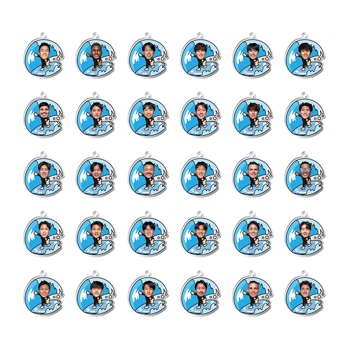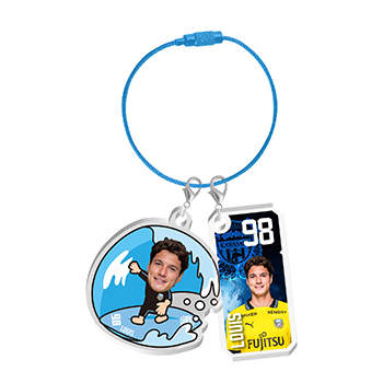 今回は、湘南の海をモチーフに選手がサーフィンで波乗りしています。このチェーンキーホルダーをゲットして、勝利の波に選手と一緒にノリに乗って行きましょう!