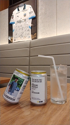 すでに販売している小林悠選手J1通算400試合出場記念缶、至福缶(私服Ver.)を即購入できるようにご用意しております。