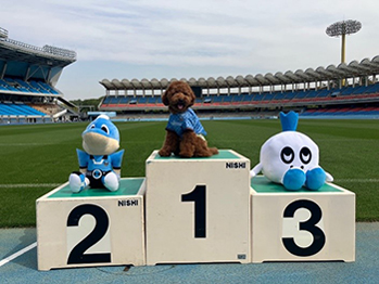 抽選で当選した20組様限定で、専用の撮影スポットでわんちゃんと一緒に撮影した写真をハーフタイムに大型ビジョンで放映いたします!