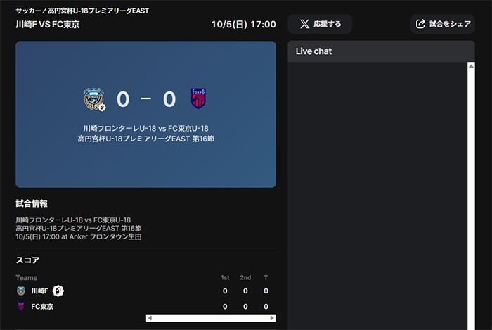 今シーズンもフロンターレアカデミーの選手たちの戦いぶりをタイムリーに皆さんにお届けするため、スポーツライブエンターテイメントアプリ「Player!」にて試合速報を実施します。