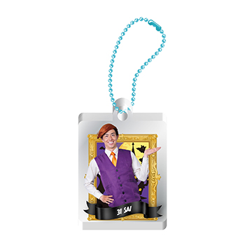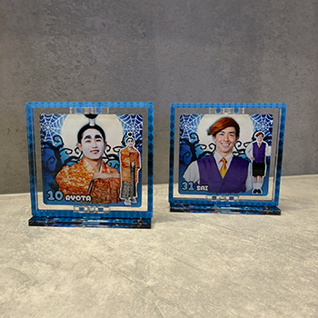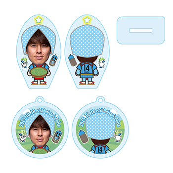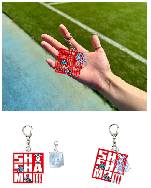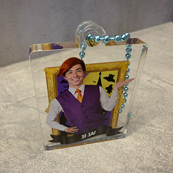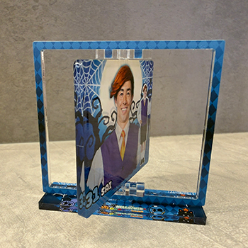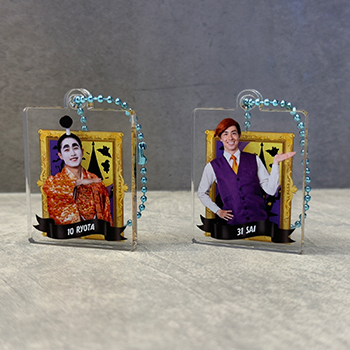 額装から選手が飛び出してくるように何とか見えないか...。と苦戦したレイヤーアクリルキーホルダーは厚みのあるアクリルを使用しているので選手がより、近くに見える...。かもしれません!