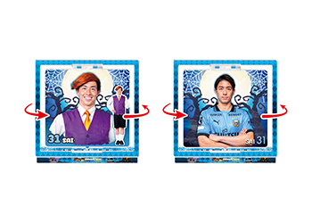 キラッと輝くメタルカードはコレクション性が高いグッズです! お気に入り選手のガッツポーズデザインを手にする為に勝利後は場外グッズ売店へ!