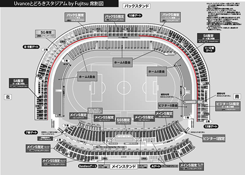 ※座席位置によってはパートナー看板、中継用テレビカメラなどの影響でピッチが見えづらくなる場合がございます。本試合はバックスタンド側中央に中継用テレビカメラが設置されるため、特にバックスタンド1階席前方からはピッチが見えづらくなる場合がございます。予めご了承ください。