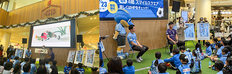 2009年から毎年市内各所で川崎フロンターレの選手が絵本の読み聞かせを行ってきましたが、今年もグランツリー武蔵小杉で開催いたします。