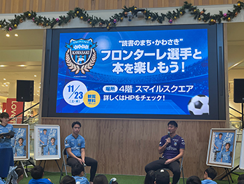 2009年から毎年市内各所で川崎フロンターレの選手が絵本の読み聞かせを行ってきました。