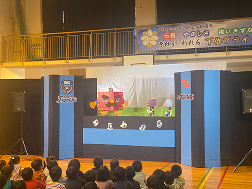 ④人形劇団ひとみ座によるフロンターレキャラクター人形劇とスクールコーチの絵本読み聞かせ