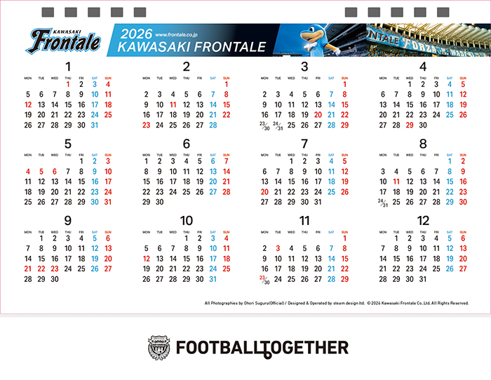 毎年、自分自身で川崎フロンターレオフィシャルカレンダーを使用している方や、川崎フロンターレが好きな方へプレゼントしている方、ぜひお買い求めください!!