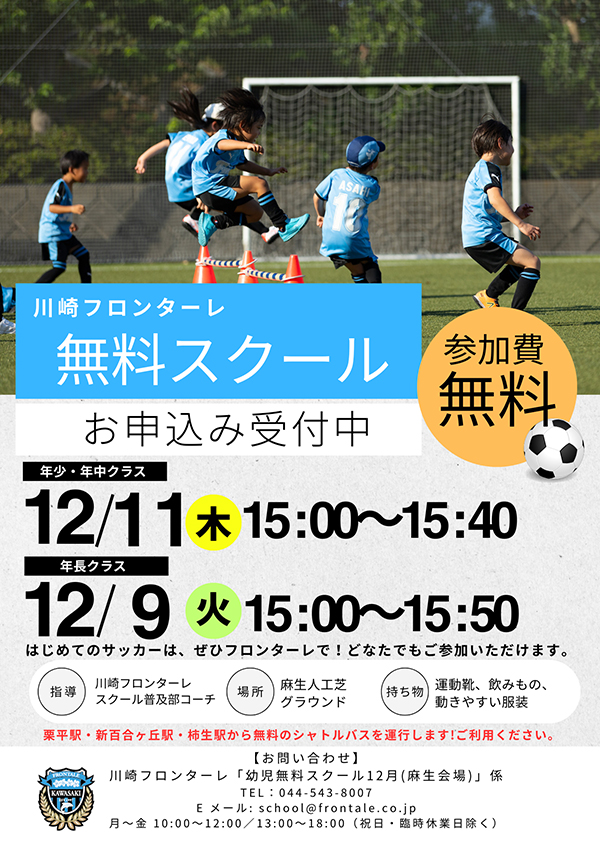 川崎フロンターレ「幼児無料スクール 12月(麻生会場)」係