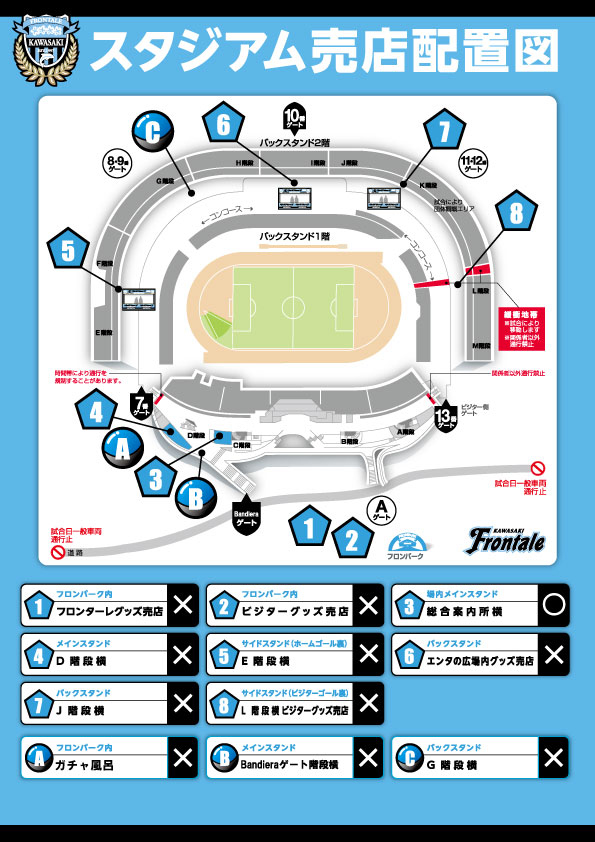 ※Jリーグ開催時「SSS指定(メインスタンド下層中央)」として運用している座席につきましては、「川崎フロンターレU-18選手ご家族、および関係者」の座席となりますので、関係者以外の方の立ち入りはご遠慮ください。