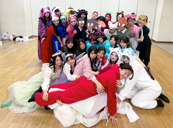 私たちは、日々の練習を技術向上、また仲間との関わりを大切に行っています。写真は実際に部員でハロウィンパーティーを開催した時のものです!