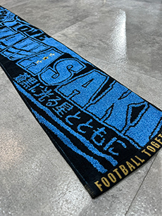 ホームゲーム勝利時限定で発売する限定デザインのタオルマフラー。青のラメ糸や星形のワッペンを使用した、勝利時限定の特別デザインです!