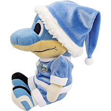 クリスマスシーズンに幸せを届けにくる選手たちによるブルーサンタ。選手...。ではありませんがふろん太がブルーサンタになったぬいぐるみを販売いたします!