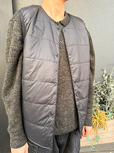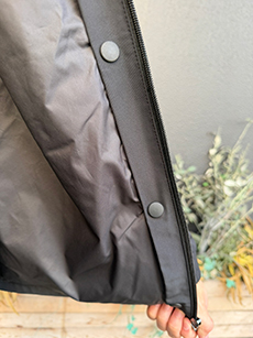 シンプルなデザインに、エンブレムでアクセントを添えています。取り外し可能な中綿入りベストを内蔵しており、ボタンで簡単に脱着できる設計です。天候やシーンに応じて、ジャケット単体、ベスト単体、中綿ベスト+ジャケットの3通りのスタイルを楽しむことができます。快適さと機能性を高い次元で両立し、あらゆる場面で活躍する一着です。