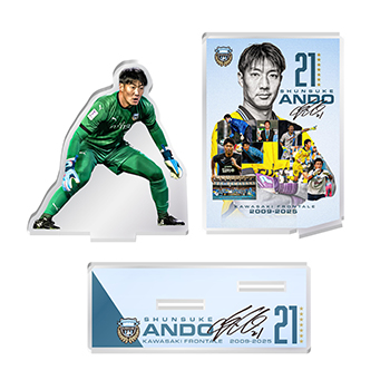 アンちゃんの川崎フロンターレでのプレー写真などを集めたメインビジュアルに加えて、2025シーズンのプレー写真をアクリルスタンドにしました。