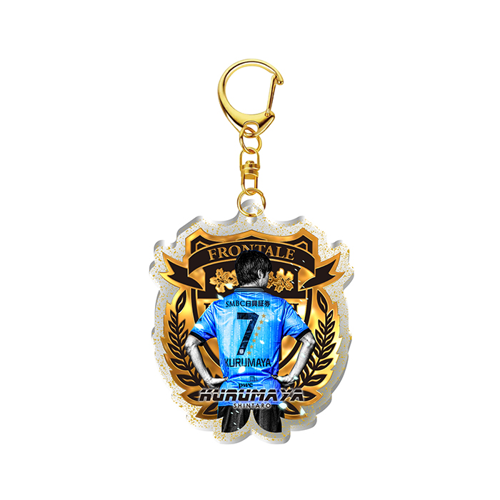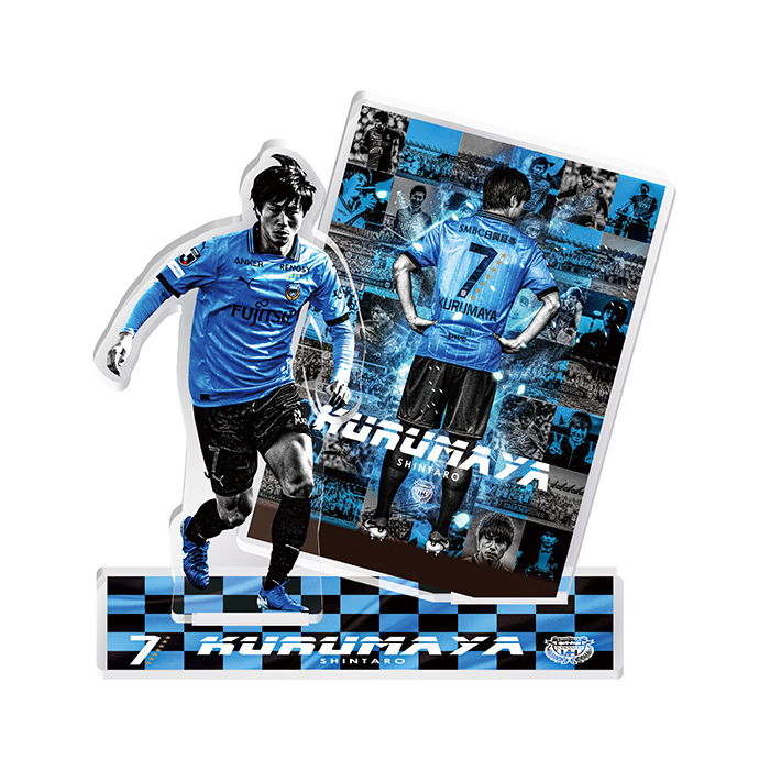 シンタロウの川崎フロンターレでのプレー写真などを集めたメインビジュアルに加えて、2025シーズンのプレー写真をアクリルスタンドにしました。