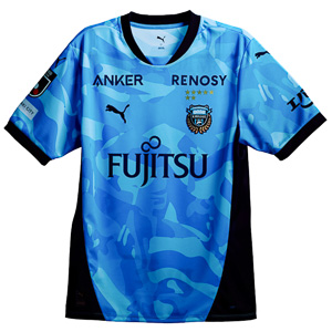 クラブの象徴であるフロンターレブルーを、濃淡のグラデーションで描いたカモフラージュに採用。