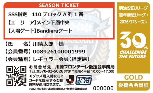 【入場可能】明治安田J1百年構想リーグ・2026/27シーズン ファンクラブ〈後援会〉会員証