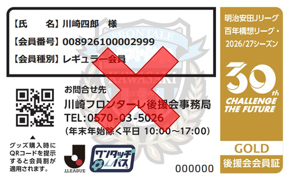 シーズンチケットを購入されていない方のファンクラブ〈後援会〉会員証を誤ってご持参いただいた場合、ご入場いただくことができません。